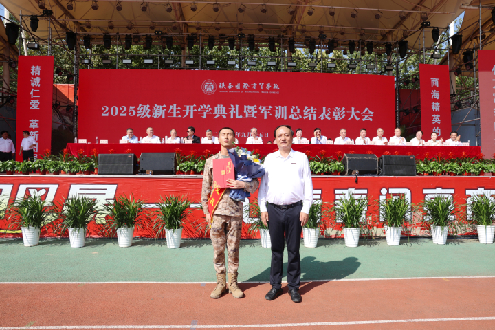 陕西国际商贸学院隆重举行2025级新生开学典礼暨军训总结表彰大会